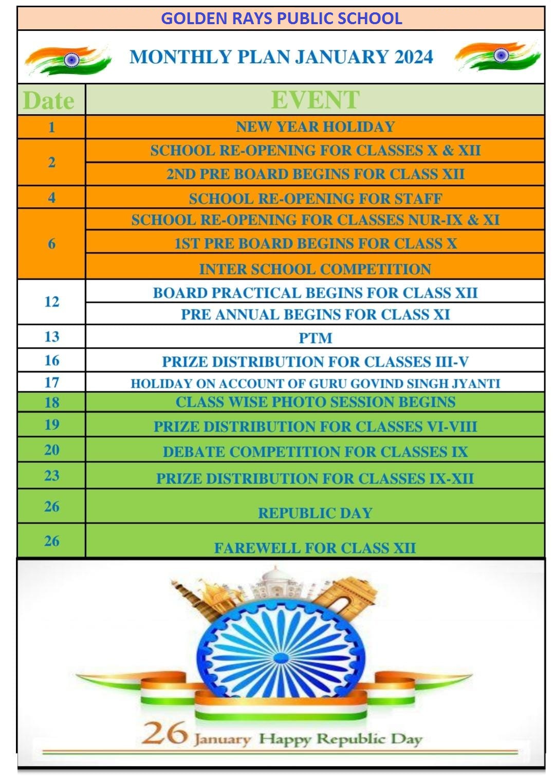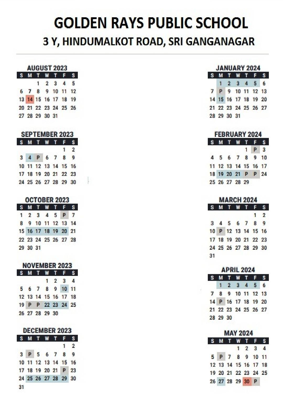 Academic Calendar – Golden Rays Public School